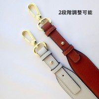 天然皮革に近い質感の最高級フェイクレザーのショルダーストラップ。 ワンショルダータイプです。 表面はシボ(皺)加工を施し、よりリアルな質感と柔らかさを実現。 リアルレザーよりも柔らかく、滑らかな手触り。ほどよい3.8cm幅なので、長時間肩にかけても痛くならない! 76〜80cmまで2段階で調節可能です。 ショルダーストラップは取り付け取り外しがし易いナスカン付きです。付属のDカンをバッグ本体に付けて、ストラップの装着をしてください。