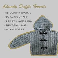 コットンメランジで編むキットチャンキーダッフルフーディー キットDesigned by hatschiかぎ針で編む、ダッフルジャケットのキットです。(写真はソフトグレー使用)